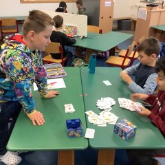 Die Drittklässler hatten im Vorfeld geübt, Texte über Schmetterlinge zu lesen. Diese lasen sie nun ihren Paten vor. Anschließend spielten beide Klassen zusammen Brettspiele und hatten viel Spaß dabei.