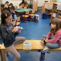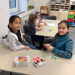 Die Drittklässler hatten im Vorfeld geübt, Texte über Schmetterlinge zu lesen. Diese lasen sie nun ihren Paten vor. Anschließend spielten beide Klassen zusammen Brettspiele und hatten viel Spaß dabei.