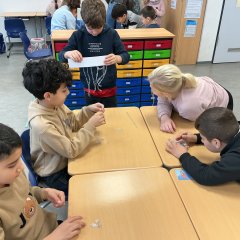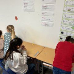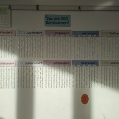 Die Kinder bündelten geschickt und bildeten Zehnerketten. So hängen in den Klassen nun eintausend Büroklammern. Jetzt können sich die Kinder die große Zahl besser vorstellen und in den nächsten Wochen den Zahlenraum noch besser kennenlernen.